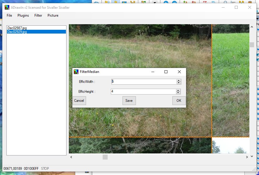 figures,noise) peuvent nécéssiter la configuration de lot de couleurs. il faut tout simplement créer une ou des palettes de lot de couleur à partir du menu Picture->Palette (fonction prise en charge à la version r1). Les fonctions de sélection par mask ne sont pas disponible à la version r1 ! Le SDK pour le developpement sur l'environnement JidrawIn sera bientot disponible cependant les plugins devront être tagués numériquements auprés du service Sivaller. |